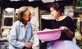 电话线被掐断后,小女孩和老太太站在院子中央打嘴皮官司,你一言我一语,都是孩子般的语言:你这个坏孩子,难怪没有男朋友!——你是个坏老太太,难怪没人来看你!