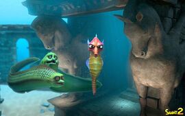 很多人都向往海底世界,不仅仅是孩子,就连大人,特别到了夏天,去海底水族馆观赏总是要排好长的队。也许这就是人的天性,对于自己不能掌握的世界充满好奇,人类总想着如何顺利的登上别的星球,就如同好莱坞科幻片中总有其他星球的种族对地球虎视眈眈一样。现实生活中的人们,没有过多的精力关注其他星球,但是生活在陆地上的人总是对浩瀚无边的大海充满了好奇心,海底世界到底是什么样子的?是不是真的如纪录片中讲述的那样?海底物种之间又有着怎样的关联?当带着这一系列问题看《萨米大冒险2》的时候,你就会发现,即使大人也同样有着一颗童真的孩子心,然后在九十分钟里,大人能够陪同孩子一同经历一场奇妙的冒险之旅,这场旅行也将满足孩子的一切好奇心。2012年国庆档,比利时3D动画电影《萨米大冒险》在众多大片夹击的情况下取得不俗的票房成绩。如今,《萨米大冒险2》以更广阔的视野更精益求精的3D特效和更加诙谐幽默的奇幻剧情强势来袭,从萨米大冒险升级为萨米带着孙子一起大冒险后,我们也有理由相信这部制作精良的动画片将在炎炎夏日给观众带来一丝清凉的感觉。说实话,个人其实并是不是特别推崇3D电影制式,特别是在被诸多进口国产后期转制的3D电影无情的毒害过多次以后,甚至一想到要架着两副眼镜忍受两个小时就有点害怕。但慢慢发现,其实3D不过是一种方式,在生意人眼里,这是提高票价的一种方式,而在艺术家眼中,3D是达到最佳视听效果的一种渠道。至于需不需要3D,其实重点还是在于电影的内容跟剧情的需求。说实话,看过这么多3D电影,个人印象最深刻的不是《阿凡达》,而是前年一部由卡梅隆监制的《夺命深渊》,通过3D眼镜,观众可以看到一个真实且危险重重的海底世界,有一种无与伦比的代入感,就仿佛将自己置身于海底一般惊险刺激。所以,同样讲述海底冒险的《萨米大冒险2》尽管是动画片,但是全电脑3D制作,除了让人感受到海底特有的惊险之外,还会时不时的有些稀奇古怪的海底动物直面而来,出色的技术也会给孩子带来相当逼真的观感。所以,《萨米大冒险2》完全值得再去带一次3D眼镜,因为即使想我这样带着双眼镜的人也丝毫不觉得有所负担。当然了,再逼真的特效也是外壳,假如没有一颗饱满的内核,这同样是一部失败的电影。《萨米大冒险2》则不然,显然在有了前作的惊艳基础之上,主创团队更加注重对电影内核的全方位塑造,不仅在海底生物的物种上比前作更丰富,而且片中涉猎的成长、亲情、友情、团结和顽强的品质亦让人受益良多。所谓满足孩子的好奇心,并不仅仅是指视觉冲击,而更多的是在心理上有所思考,毕竟当瑞琪和埃拉在经历千辛万苦跟萨米爷爷重逢的时候,孩子们的内心里定然会有所触动。看动画片而已,你又能要求多少呢?