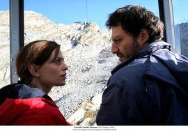 我知道媒体场总免不了刻薄,可人们失望的发现《心中的野兽》中那个在纠结甚至乱伦关系里游刃有余的导演不见了,在新片里加上一个主角,就宛如电影里那永远只能相视错过却不能相交的雪山缆车。是的,多年以后,当重回营地寻觅温存的女人(寻觅的动机完全模糊,之前剧情交代下的两人只有彼此防备和怨恨而不存在一丁点爱恋),又一次郁郁寡欢的坐缆车下山回家(又一次行为处理的莫名其妙,居然要见曾经错失的向导,干嘛又要走人?),我们的男主角却在另一个绳索上被迎面撞见。这个在导演阐述里被格外珍视的自我感动瞬间(“两辆车从相反的方向驶来,短暂的相遇后,又加速奔驰而去。这个画面真是对曼弗雷德和马瑞娜的关系的真实写照”),却不幸引来了全场观众又一轮的爆笑。同样奇怪的笑点,我只在张艺谋《十面埋伏》结尾时体验过,当章子怡扮演的角色在雪地里死了好多次却一遍遍哭天抢地的醒来时,对不起大导苦心造诣的感动场面,观众们没心没肺的狂笑起来了。