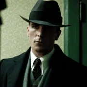 人物性格的模糊我认为是导演有意的。上面我也说了,电影对史实忠实到了让人有看历史片的感觉,而对历史最准确的把握,是对时代更替的掌析。FBI的一步步壮大其实是美国走上帝国之路的缩影,曼哈顿博士演的(不知道那家伙叫什么,反正就认得他是他个大蓝人)的胡佛局长,一个急功近利的官僚几乎是片子里唯一符合传统审美习惯的人物,他是有性格的(虽然戏份很少),因为历史在他这样的人的手中;其他的角色,都是只有特点但没有真正的性格,不管是Dillinger 还是Purvis,他们都不是创造历史的人,一个陨落,一个功成,跟他们本人是什么样的性格没太大的关系,只是被时代的大潮挟裹着走过各自的人生而已。