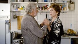 人一旦老去,就似乎有成为“万人嫌”的趋势。影片开始不久,一直致力于社会活动的让,在参加集会游行时,无论言论怎样敏感激烈,都会被忽视,警察宁可抓捕妇女和孩子,也要绕开发白老人,影片以这样调侃的方式,将年老者的尴尬摆在了观众面前。而让娜去挑选棺木时,看到清一色的沉重色调,让生性活泼、外形保持靓丽的她不满,那些沉闷的色彩,仿佛意味着年老衰亡就将和一切明朗鲜亮的事物无缘似的。