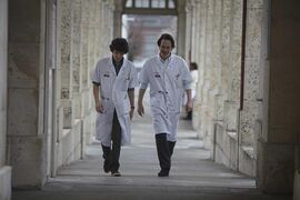 班杰明是个刚毕业的医学院学生,他进入自己父亲担任外科主任的医院当起了实习医生。满怀济人抱负与一腔热血的班杰明马上遭逢了生命中第一场震撼教育。先是实习医生的地位低下,不太有人鸟你,再来,居住的宿舍简陋破烂,与游民窟无异,然后,更可怕的是医疗设备的严重短缺,医护人员人力的匮乏,更有医院裡各科系的盘算计较,这些都是学校未曾教过的「现实课题」。与班杰明同时进入医院实习的是一个来自阿尔及利亚的外籍实习医生阿布德,他在阿尔及利亚已经是执业医生,为了申请技术移民,报考法国医生执照,而不得不再在巴黎医院重新实习一遍。阿布德秉著自己的医疗良知,坚持做著他认为对的事情,比如,内科因为病床数少,而不希望留病人,因此希望用各种方法把病人的外在病征改善,好转出去,以空著病床给其他患者,但这样的决断却与阿布德的道德良知有违,因为大家都知道癌末的老妇人无论如何是改善不了的,强制性的侵入型治疗只会徒增苟延残喘的生命痛苦。在一次有争议的医疗疏失中,病患离世了,班杰明因著自己父亲的保护,难得以免责,阿布德却因此要受到处罚,眼看著白色巨塔中的重重问题与总总不公平现象,班杰明该如何自处?是慢慢同化成其中一员?还是努力抗争呢?本片号称法国版的「白色巨塔」,是新锐导演多玛斯.黎提的第二部剧情长片,导演自己是医学院毕业的高材生,在校其间就喜欢拿著摄影机自拍短片,这部片是根据自己在医院实习的所见所闻编织出来的作品。导演手法平实,多用很写实简单的镜头在说这个故事,毫无花俏的卖弄,只是透过简单的剪接来点出那种实习医生面对大环境的无奈,比如,一边是垂垂危矣的病患,下个镜头马上是一群实习医生在医院宿舍的耶诞狂欢派对(我想这无关批判或对错,只是很真实地呈现了生命中的实况,但却值得我们去反思),又比如,在决定结束一个生命的痛苦延续后,两个男主角站在夜色中抽烟放松,那时导演用了温暖的黄光,这在外景夜戏中算少见的(通常外景夜戏多是冷色系的蓝光为主),这轻轻的一笔,也说明了导演是肯定这种人道抉择的,这些看似不起眼的技法,让本片虽然简单,却如此动人。片名「Hippocrate」是古希腊的名医希波克拉底,大约等于华夏民族的华佗那样的人物。那时的希波克拉底已经会偷偷解剖尸体(律法并不允许),研究人体结构,并且提出一些具有前瞻性的疾病观点(例如对『癫痫症』的见解),为了崇敬这位医疗先知,世界医学协会在1948年的日内瓦宣言裡启用了著名的「希波克拉底誓言」,也就是所谓的医生宣言,发誓要忠于医德,济世救人。我自己在戏院中不断泪崩的是高龄88岁的老奶奶,癌症末期,其实她最需要的只是安宁疗程,让她在生命最后一程尽量减少痛苦,而能够尊严地走到死神的面前,开始另一趟旅程。然而内科不是安宁病房,多还是选择侵入性治疗,希望病患好转,可是一个只剩三个月寿命的癌末病人,是能够多好呢?所以当我看到老奶奶被强制插管,手还因为怕去自行拔管而被捆绑的拘缚著,更别说手背因为无数次的针头插入而瘀青肿胀,看到这裡时,我不禁泪涔涔,那让我想起我奶奶生命最后的光景,也曾经历过这样一种「折磨」,除非病人求生意志坚强,否则谁会愿意在生命的最后一程陪伴的不是家人,而是一台台冰冷,徒有电子声响的医疗仪器呢?插管的苦痛,气切的窘迫,被绑缚的不安与焦躁、无限制的死亡恐惧跟漫漫无期的失落感,难道这些会是我们奋斗一生后,最终希望的悲凉下场吗?(至今这些场面还依然在各大医疗体系中上演)是的,我们活在一个科技时代的高峰中,我们的医疗技术可以不断延长人类的寿命到尽可能的时间单位,但是,别忘了,相对于未来,我们尚有很多要学习的,例如我们医疗体系的种种问题(在现代社会中,医院这种尴尬地介于营利单位或公益事业的灰色地带;医护人员的短缺造成工作时数过长、医疗品质下降;医病关系的健全化与健康化;现代医学的总总盲点以及台湾更複杂的健保制度等等),我们面对生命本质与人道关怀这一块,其实还有巨大的进步空间!包括最实际的生命教育,实话是,医生也都是平凡人,也都是「从当医生后才开始学作医生的」,年轻的医生可能只会看数据、看报表,以「救活」为己任(这完全没有错,因为学校是这样教得),但随着自己生命中经历了一场场的生离死别,尤其是更切身的自己亲属、甚或是一己生命的危脆边缘,也许方能慢慢融入生命的关怀,厘清除却「救活」之外更本质的生命意义,也许那时,他们才会意识到「送死」(如何让病人安心、减少痛苦地、无忧无惧地上路)更是一门至为关键的学问!我的中医师会灌输我很多观念,她也是历经了自己至亲的生命末程后,才开始慢慢修正自己的观念,比如,人就是一个在逐渐衰老的过程,所以期望熟龄人士健康是种不切实际的奢望,医生能做的,一是让病人心安,二是尽量保有患者各种身体功能,就像一部老车,它可能已经无法再跑出时速一百公里的速度了,但总可以让它保有时速20的速度慢慢自理前进吧!也就是说,对银发的照疗,保「健」是不可能的,但保「堪用」却是可行也更实际的。这样的观念也可以让年长者减少忧虑自己「不再健康」的烦恼,因为失去健康是必然的结局,只是如何缓慢、渐进性地跟自己日益转变的身体沟通、相处,更为重要。(所以当我们说『抗老』,其实是非常