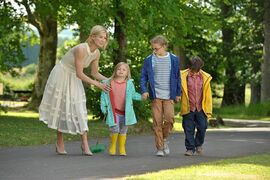 片中三个小孩的塑造非常成功,清新自然不做作,浑然天成的萌。Jess收集的每一块石头都有自己的名字,执拗起来可以憋气到晕厥;Mickey坚定地相信着奥丁的存在,挥舞着长剑四处奔跑;Lottie把爸妈的谎言记录在随身携带的笔记本上,故作老成地劝阻爸妈无休止的争吵 。他们用自己的方式观察这个世界,他们的生活自有一番规则。他们会思考,在鸵鸟下蛋到一半的时候,可以像推排球那样把蛋塞回去吗?鸵鸟如果在非洲下蛋会不会变成煎蛋呢?Lesbian是来自勒斯比亚(Lesbia)王国的人吗?