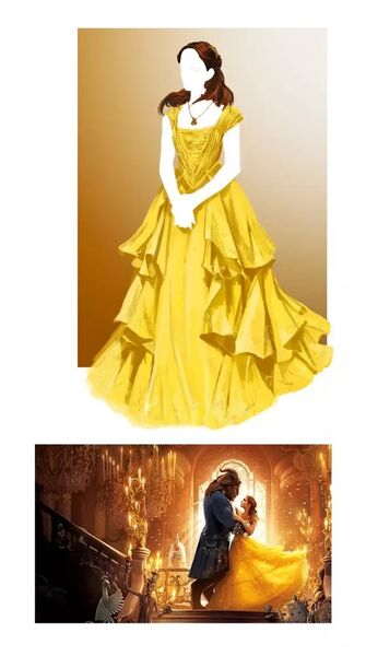 在不违背原来服装色调的前提下,Durran 希望在真人版的服装上加上更多细节设计,比如上身增加的薄纱围肩细节,既兼顾了法国 18 世纪时期的服装特点,又能更好地带出 Belle 女性化的特征。
