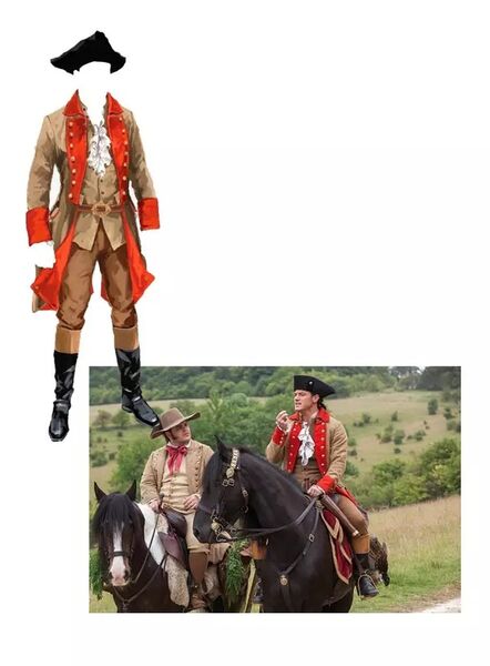 Luck Evans 扮演的 Gaston 总是希望成为众人的焦点,所以这件极具装饰性的红色长夹克在电影里出现的频率可是相当的高。