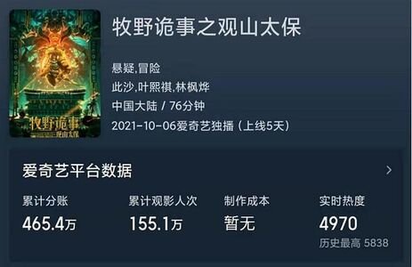 与赚得盆满钵满的《黄皮幽冢》相比,另一部鬼吹灯系列电影《牧野诡事之观山太保》上映5天却仅收获了465万票房。随着国庆假期结束,观看人数开始断崖式下跌,最终能否过千万都成了未知之数。
