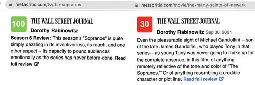 作为拥有独立宇宙的那种神剧,《黑道家族》(The Sopranos)的前传《纽瓦克众圣》(The Many Saints of Newark)上映后评论区却是“哀嚎不断”。