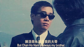 这仿佛是两次充满象征意义的告别。第一次象征着《古惑仔》系列转变了《英雄本色》时代的江湖内核,青春热血在向枭雄传奇进行告别,似乎每次古惑仔的重生,都伴随着仁义前辈的逝去,就像B哥在《人在江湖》中的死去。而片尾这次告别,也许更像是一次倔强的宣言:虽然在后江湖时代已经不时兴“做兄弟有今生,还要有来世”,但对不起,即使你是大势所趋,我们也不和你玩儿了,我们还是更愿意做回铜锣湾的那群热血的古惑仔。