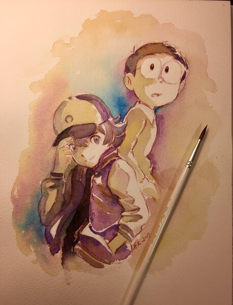 一不小心写了这么长,真的谢谢你们花时间看到这里。 最后放张曾参与哆啦TV和多部电影制作的原画师金子志津枝画的应援图来结束吧。 对了,这次片尾也是水彩风插画,同样很精彩。彩蛋出来之前也特别好看!