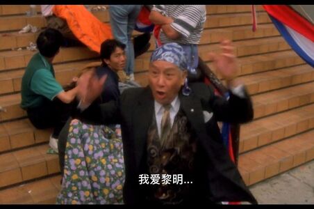 比如邱礼涛对于喜剧的处理,常有种非常粗糙的荒诞感。以前看《阴阳路》,印象最深的就是邱礼涛非常喜欢在电影中加入很多看起来有些廉价的搞笑内容,像《阴阳路》第一集中由他执导的部分《陀地位》,就是几个故事中最具喜剧性的一part。他安排吴志雄与苑琼丹俩人cosplay《天若有情》,那种反差本身已经非常惹笑,而吴志雄那种全程走神的演技更令整个戏剧有种荒谬的感觉。也许是因为制作仓促和成本所限,邱礼涛在这些喜剧的戏剧处理上常常不会很细致,表演的节奏也有问题,但不知道为什么,这种粗糙反而意外地造就了某种「无厘头」的感觉,而我就很吃他这一套。这次的《家和万事惊》也是一以贯之,这部戏的笑料靠非常密集的对白和表演的强烈反差来塑造,听国语配音肯定是聒噪不堪,但粤语原声则能体会到那份邱礼涛式的幽默。(所以,我是一定会去看他今年不挂名执导的《新喜剧之王》的。)