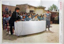 接着,就是二人又展才艺的机会,笨山连拉带吹,木犊操弄起纸片小人(类似于皮影戏),引得村民纷纷叫好。