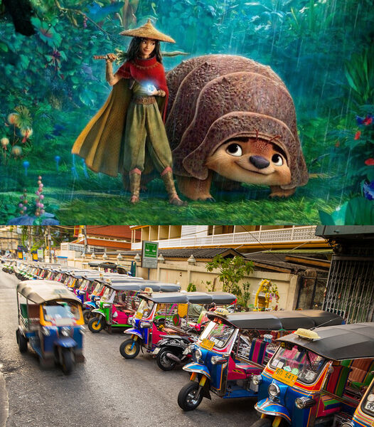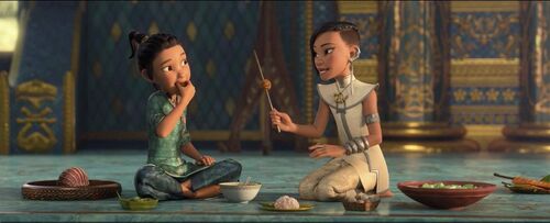 San Fransokyo《超能陆战队》的导演,唐·霍尔,也正是本作《寻龙传说》的导演。从《寻龙传说》呈现出的服装、建筑、美术设计和料理食材等细节来看,这部电影借鉴了老挝、印尼、泰国、越南、柬埔寨、马来西亚和新加坡等东南亚各国的文化。在西方语境下呈现出一部有着浓厚亚洲文化韵味的电影,并不是一件容易的事情,即便美术总监可以汲取亚洲文化的特色把控美术风格,在音乐编排上挑选几样亚洲特色的乐器进行编曲,如果人物情节的内核依然遵循着西方文化语境的既定思想,最后完成的作品很有可能只是一个依样画葫芦的表象。文化表达有时候倒是和做菜差不多,摆盘花里胡哨的或许可以勾起让观众一探究竟的愿望,但取决于菜好吃不好吃的关键,还是要文化入味。