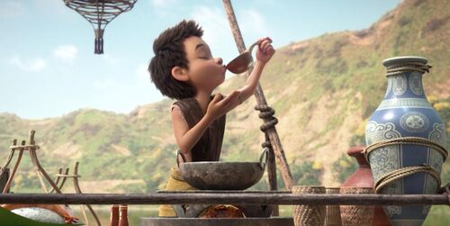 做饭好吃的人,能有什么坏心眼呢?这是亚洲文化当中永恒不变的真理。你很难不对一个做得一手好菜的人产生强烈的依赖感与好感。童年创伤让拉雅不再轻易相信任何人,阿波却轻易地用一锅好粥拉拢了拉雅的信任。冬阴功汤在父亲手里成为了团结五族的象征,而阿波的虾粥则起到了建立信任的一种途径。在此后的冒险当中,每当船上多一个乘客,就会重复出现一次大家一起喝虾粥的场景,一再强调了食物是凝聚团结的纽带。