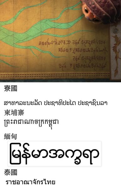 在关于神龙希苏传说的卷轴上,书写的文字融合了现在东南亚文字的设计。