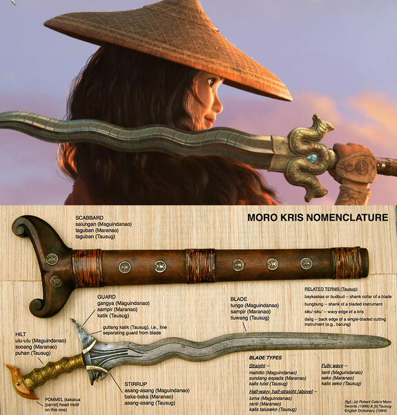 拉雅的佩剑灵感来自于马来群岛的族民使用的格里斯剑(Kris)。