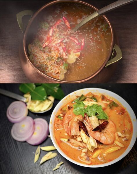 一边这么说着,父亲一边在个满是佣人的大厨房里向拉雅展示了他最新研制的菜谱,就像每一个亚洲文化里慈爱的父亲一样:纵使他博学通识、功成名就,却依然保持着喜欢下厨的兴趣爱好,会做让小孩一生都难以忘怀的父爱料理。他往一口大汤锅里放了一勺虾酱、一把柠檬草、一碟笋、一点辣椒和棕榈糖,望着这碗飘着奇奇怪怪佐料的红彤彤的汤,拉雅以为父亲要给其他部落下毒,禁不住馋喝了一口才发现: