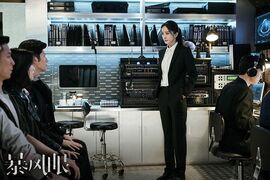 还有马尚与赫子轩用于追踪陈灿的放射性同位素跟踪装置,只有指甲盖大小、液态,就在飞机上假装偶遇,趁其不备洒在追踪对象的身上;以及陈灿用于窃取教授电脑资料的专业级数据吸盘,外表看来只是贴在杯底的普通标签,却可以自动连接附近的电脑设备,并复制数据,转眼间就能把资料拷贝偷走……《暴风眼》花大量篇幅来展现这些高科技技术、专业刑侦及反侦察手段,而在感情戏方面则相对克制很多。