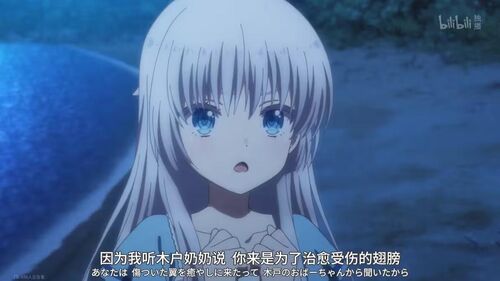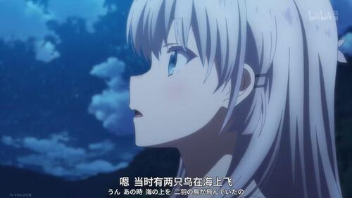 它们相互鼓励,它们比翼双飞,这是为后来的故事埋下的第一个伏笔而这个伏笔的表现全烂了,白羽看起来根本就没有在看空中的候鸟。原本是白羽看向天空,羽依里也看向天空,两个人一起往候鸟的方向看去的,带有共鸣的内容。