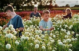 我来自乡下的一个小村庄,离Ghent大概20分钟车程。我长大的世界,就是在田野中奔跑。花园是基于村里的一个农场。我觉得花田传达出一种脆弱感,与冰上曲棍球的世界形成鲜明对比。Léo的家人在这个五彩缤纷的环境中工作,是对童年的一种独特投射,而且这还是一个随季节变化的场景。当秋天来临时,花被剪掉,这是一个相当暴力的行为,色彩也随之消失。季节的变化也在童年的色彩和泥土棕黑色调之间创造出一个明显的断裂点。我很想强调这种对比,以表达角色的哀悼过程。冬天过后,花被重新栽种,颜色恢复,预示着希望和生命继续的迹象。
