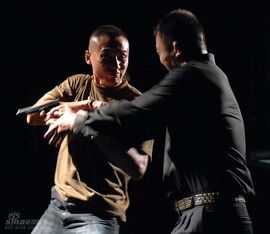 其一,是运用岳家枪和宋代武术的象征含义,为其赋予某种属于古老中国的道德伦理基调,“路见不平拔刀相助”虽然触犯了现代社会的法律体制,却在“正气”这一主题下为观众们营造出某种不言自明的认同感。然则,老三心目中的对与错,是与非,黑与白,毕竟不能向当下或者未来去求证,而不得不从久远的过去找寻支撑点,这种刻意设置与其说是解决,倒不如说本身既是那份尴尬和茫然的一部分。