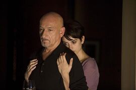 这个电影一开始,先交代大卫的身份:在电视访谈节目里侃侃而谈的学者,谈的话题也很有暗示性,清教传统的压迫与60年代的反叛。然后,镜头掠过暮色中的曼哈顿,进入大卫的房间,很宽敞,很有品味的布置,餐桌、钢琴、沙发,中产阶级的大房子。窗外有雨,看得见大卫的背影,略微有些落寞。旁白说到老年问题,说到还不老的心——大卫,花甲之年了。下一组镜头是哥伦比亚大学,他在黑板上大字写下罗兰•巴特,穿白衬衣的24岁的美丽的康斯薇拉进来,坐在了第一排……看看DVD机器的显示时间,3分58秒,任谁都知道了,这个电影是关于“忘年师生恋”的。