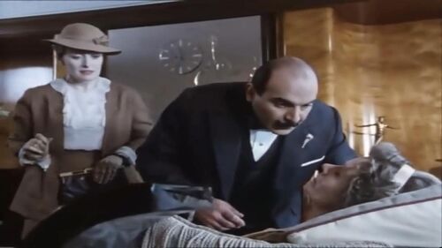 两条主线并行。现实中,波罗替从未出面的Mrs. Japp陪同Japp回布鲁塞尔领奖,两个老伙计相互的欣赏溢于言表。波罗的回忆里是一场历史背景浩大、人物丰富的案件,是年轻气盛的自己健步如飞,为了倾心的维吉妮和坚持的真相不惧权威四处奔走。最后药剂师招呼两个儿子——Henry和Hercule跟波罗见面,背景里维吉妮的倩影渐渐清晰,转过头的波罗局促得一如年少,一只手下意识地抚摸那只从不离身的花束胸针。吻手礼之后他抬头,眼眶泛红。