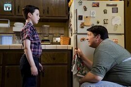 当老爸请求谢尔顿帮他计算球队的胜负概率时,外婆给谢尔顿耳语了几句,谢尔顿马上要求老爸给他在电脑商店买一件商品做为礼物,一向不喜欢谢尔顿去电脑商店的老爸居然爽快同意了。