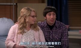 在莱纳德跟他们同行,抱怨潘妮和拉杰什关系过于亲密,并且还去各种地方玩耍时,伯纳黛特帮他开解说“有人帮你去那些你不愿去的地方,该感到高兴”。霍华德就纳闷了:“我让你陪我去哪些你不乐意去的地方了?”【E19】