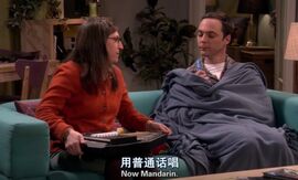 本季最令我惊喜的莫过于以下这一幕:谢尔顿经历一系列“断片”遭遇后,在家里慢慢恢复,要求艾米为他唱一首《Soft kitty》,艾米先后用英语、德语、普通话、印第安语……都为他唱了一遍。【E20】