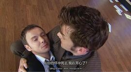 这集里面有很多有趣的地方。比如说博士说出了:“The world is a stage……”然后莎士比亚大赞,说这句不错,这句是老莎的经典名言了,竟然是这样来的,囧。。还有就是博士引用了Thomas Dylan那句“Rage,rage aginst the dying of the light.."莎士比亚也很开心的说这句也不错也~然后博士说这个是人家的= =老莎随口说出了“to be or not to be.."这句,博士说你最好写下来,然后老莎说还是不要了,有点做作……我再囧,英国人还真是有娱乐精神。最funny也最吊诡的一个场景就是博士发现了外星人将利用莎士比亚即将上演的戏剧最后一段来打开通道时激动的说出了:“The play is the thing!"这句是《哈姆莱特》当中王子的经典台词,DT前不久才在皇家莎士比亚剧团的哈姆莱特中出演了这位别扭的丹麦王子,而且也说了这句台词。于是我们有幸看到了DT本人和Doctor瞬间合体。。。这种错乱的感觉倒是很符合一部以时空旅行为主题的科幻片- -不知道是不是源于编剧的某种恶趣味。然后doctor补充说这句你可以用的时候老莎那个高兴的表情啊~真可爱~