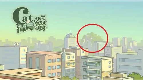 第25话3分23秒,右上角有一处被树木包围的建筑群,是数年前风息死后造就的森林。
