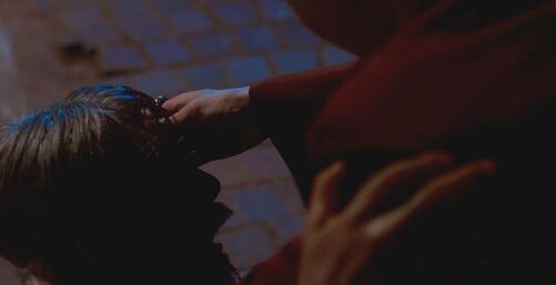 Fa想要逃跑,却被浑身是血的保安拦住,并且将手中的警棍挥向了她。