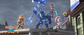 风暴的父亲风雷十年前在保卫地球的战斗中被狂岚博士抓走,同时导致风暴的家乡蓝虎村也一同消失。十年后,已经成为宇宙护卫队队长的风暴偶然得知父亲和狂岚博士可能被困在异时空。为了营救父亲,风暴与护卫队的伙伴们制造时空缝隙,来到位于平行宇宙的异时空。 在那里,他们发现狂岚博士十年前的能量波动实验意外将蓝虎村传送到了这个异时空,并囚禁了许多蓝虎村民用于实验。风暴成功救出已被狂岚博士折磨到失忆的父亲风雷。然而,在返回地球的过程中,狂岚博士也通过时空裂缝回到了地球,并率领他的火恐龙兽军团试图占领地球。 在危急关头,风暴唤醒了失忆的父亲,父子俩合力带领护卫队的其他成员,最终击败了狂岚博士和火恐龙兽军团,成功保护了地球的安全。