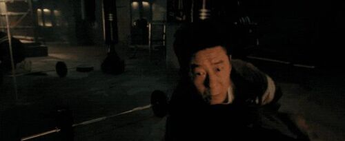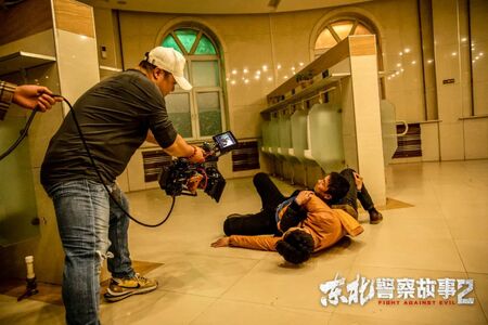 《东北警察故事1》当然前边我们也有给马强铺垫一下,他在那练格斗,有自己的擂台、健身场所,全套器材都在那,证明他一是喜欢运动,二是给观众传递一下这个人物的危险信号。第一导演:因为打镇三江是倒数第二场打戏,所以在这个场景里用了很多威亚,来提升破坏力,整个情绪要升上去了。秦鹏飞:对,但其实那一场只有两个动作用威亚了。第一导演:啊?只有两个?秦鹏飞:对,第一个就是李红旗腾空一鞭腿把一个马仔给踢飞,第二个就是镇三江出手一脚把李红旗踹飞,就这两个用威亚了。