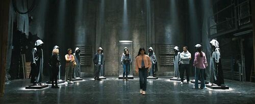 首先在此纪念Wes Craven(1939-2015)。1984年他仅用180万美元编导《A Nightmare on Elm Street》,制作虽粗糙,但创建了一个启迪全世界的恐怖意念:人将会死于在梦中被杀死。Wes Craven执导了《scream》1-4集(1996-2011)。从某种意义上说,借此系列他开创一种全新的类型解构戏中戏叙事结构,含三种形式:1.播放经典恐怖电影,场景同步惊吓氛围。2.再创基于《scream》的电影《stab》系列。角色全员影人影迷身份设定,亡命穿梭于两重戏剧故事中,分合无界推进叙事。颇具逃杀真人秀效果。3.借用英国推理作家阿加莎克里斯蒂(1890-1976)侦探戏剧结构:全员皆凶。(ps:现实中真有位美国小哥Joshua Patrick Dudley,应为90后独立影人,受启发并基于《scream》,从2010年开始至今制作了多部fan film《stab》系列,主要投放油管等网络平台。)黄金定律之开宗明义首杀:性暗示 stab辣妹 准电影人身份。恐怖类型要件集齐,同时暗示本集戏中戏结构再进化。电影系女教授Samara Weaving为本片开场增色不少,她比Margot Robbie更hot。话说两人外形相似还同台《巴比伦》,但Robbie已跻身好莱坞一线女星了。