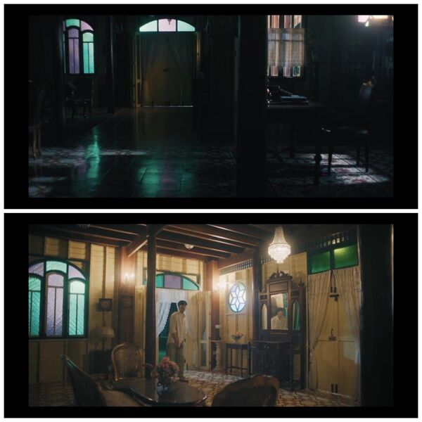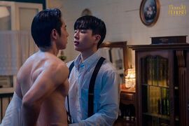 查农饰演的jom是个建筑设计师,我看到的第一个伏笔是才华横溢名不见经传的他接到一笔大单,是别人亲自指定他来改造房屋,同僚因此有些嫉妒不满,改造的古宅是他梦里出现的同一座,并且在预知梦里,他看到自己躺在陌生男人身边,这个梦促使他在第一集结尾认出了第一次见面的yai。