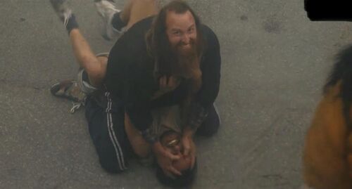 Beau从街上进入自己的公寓楼,需要好似逃命般地与一个面目可憎的纹身男子赛跑争夺进入公寓楼。