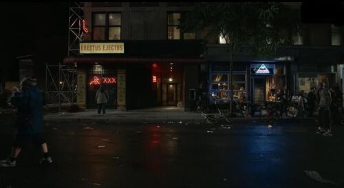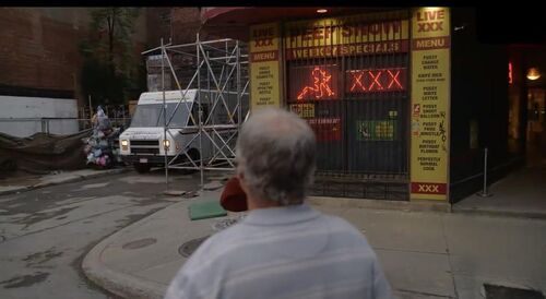 Beau的公寓楼旁边是一家peep-show店。店广告牌上的宣传语隐含着Beau对性的感受。