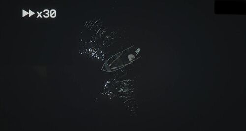 船翻了,把Beau困在了下面。船摇晃,水起泡,这似乎是Beau挣扎的迹象。观众开始鱼贯而出。 最终,船不动了,一切结束了。