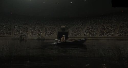 Mona意外身亡,Beau露出滑稽又恐惧表情,从家里跑走了。他来到水边,上了一艘船,驶向夜色。他穿过一个洞穴,进入了一个看似星域的地方。突然,他的船停了下来,好像撞到了什么东西。灯光在他周围亮起,事实证明,这个地方实际上是一个巨大的竞技场,有数千名观众包围着他。 在远处,是脖子上有掐痕的Mona和她的律师。律师宣布现在将“评估主体对象的罪行程度”。更远的地方,几乎听不见、看不见的是Beau的辩护律师,但他几乎插不上话。