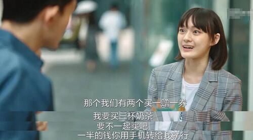 去买奶茶时,会跟路人商量一起用买一赠一券下单,路人再把钱转给她。没优惠券时,她就不买奶茶。