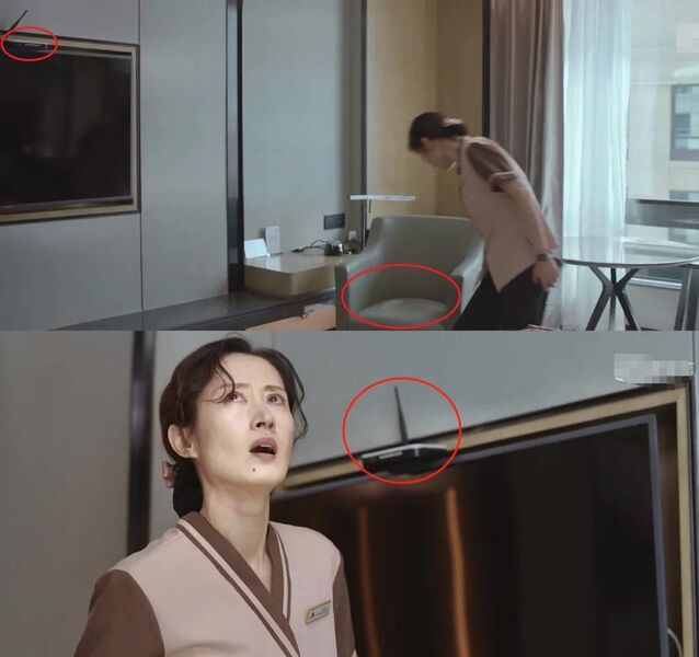刘敏涛在酒店房间发现椅子上有脚印,进而发现电视上的路由器被安装了针孔摄像头。问题是路由器这么矮,谁还需要踩椅子去安装,这不是自找麻烦吗?