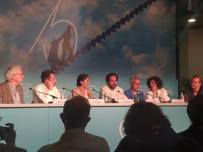 戛纳媒体发布会上,记者对导演阿里·阿巴西进行了提问(翻译@书本戛纳记者笑意):