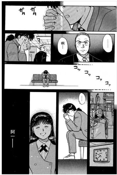 虽然这一案很经典,但是很不理解为什么要把这个案件作为第一案放出来。作为漫画的第四案(感谢评论区水垢和L两位朋友的纠正!),这部背景中金田一和美雪的关系已经是读者有认知的了。因此美雪受伤后,金田一说出了我不想破案,不想思考这些了这样的话和美雪醒来后鼓励金田一找到凶手整段双向奔赴的情节十分动人。但因为放在了第一案的位置,所以这段感情发展升华的剧情必然会被删除,可以说非常可惜。这一案原作中十分重要的感情线几乎全部被删除,不过美雪回教室找东西是为了两人小时候的合影也算是保留了一些糖了。
