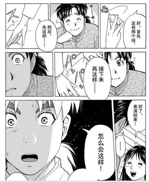 为金田一提供灵感的魔术环节剧中的处理也更像是美雪努力追求心上人的样子,但漫画中仅仅是两人在讨论案情的过程中自然而然地闲聊到,没有美雪“卑微求爱”的描绘。