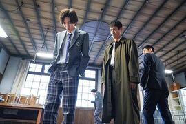 二、青山同学原作中是和的场老师在楼梯口就当年的事故真相发生争吵的时候,的场老师失手把青山同学推下台阶,为了掩埋真相把青山同学封入墙中。剧中改成故意杀人藏尸,并不是很能理解这样改编的意义,和前面的场老师帮助老同事承担责任的故事产生了莫名的冲突。