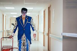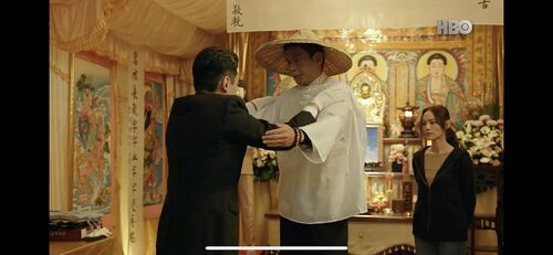 4.片中有两处讽刺比较到位,一次是穿寿衣,郭家二子都不愿意,反而阴差阳错的让私生子唐师傅穿上了。第二次是火化前唐师傅安排群演拖时间,所以真正捡骨的陪郭父走完最后一程的也是唐师傅