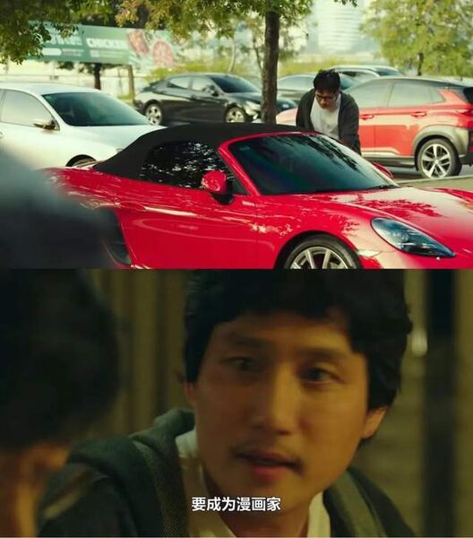 南金必把自己手中的冰淇淋一分为二,男人吃了他的冰淇淋后上了一辆豪车。