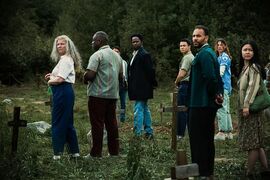 关于小镇上的人来到小镇上的方式,各个地点,州都有人来,一种可能是物理科幻,通过什么时空隧道,虫洞从四面八方汇聚到一起。但是因为之前电线没有芯,能看出来,不是这种物理科幻,更加可能是意识流科幻,四面八方的人的意识被困在了小镇。拦路的树,乌鸦都是鬼门关的象征。这些人的肉身可能在医院治疗,意识徘徊在鬼门关,伊森妈妈那句我们在车祸中幸存下来了吗?也能当做提示。现在还不能确定是否幸存。还有关于薛定谔的猫的出现,也能看成是这些人处于非生非死的状态。这个小镇时间跨度很大,早期进来的人可能是一直在治疗的植物人。这样拍最后也能圆上各种bug。