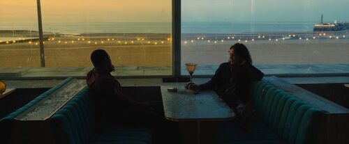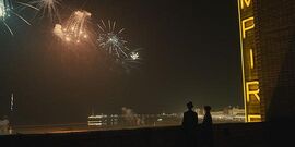 二人走向平等的关键,是新年前夕,史蒂芬从同龄女同事的派对上退出,回影院陪希拉里看烟花。狄金斯精巧的摄影,把他们放置到过大的背景里,极美的烟花下,衬托并强调出个体本身的渺小,如此既有弱者相互取暖的意义,又有世界对弱者偶然释放的同理讯号。